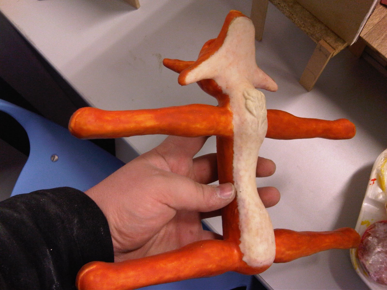 To finish painting the fox I gave it one last coat of the orange, to give it a more uniform colour and the mixed up some white to paint his belly.