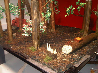 The fallen tree, which is also the fox's desk is removable so we can get the camera in position properly for some close ups.