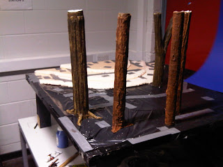 Alex, May and myself began work on the forest floor. This is the rough design of how it's going to be laid out drawn by May, showing the different camera positions we'll be using to get the most from our set.