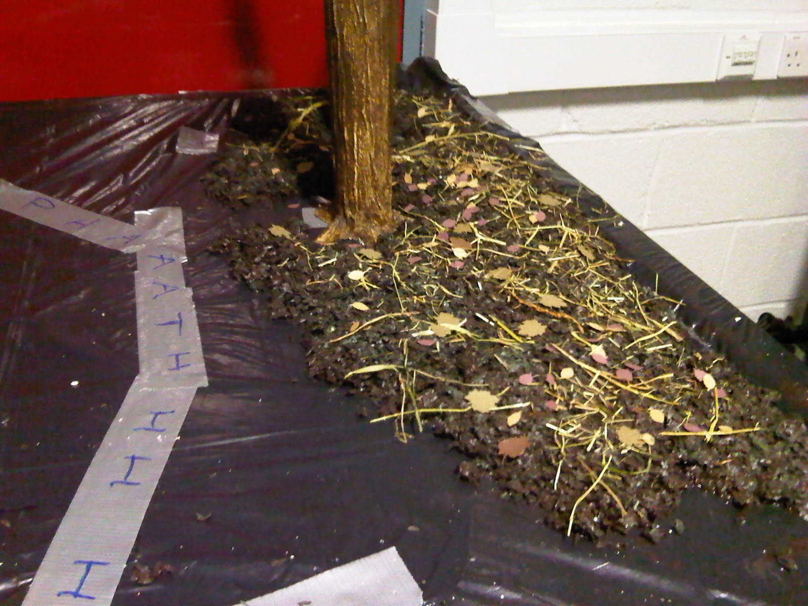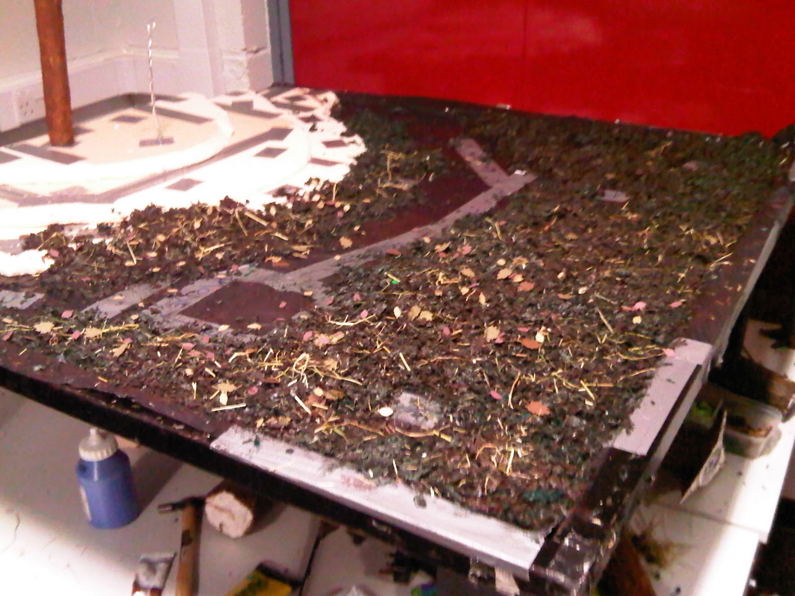 With the bare bones of the set now set up, May began work on the forest floor.