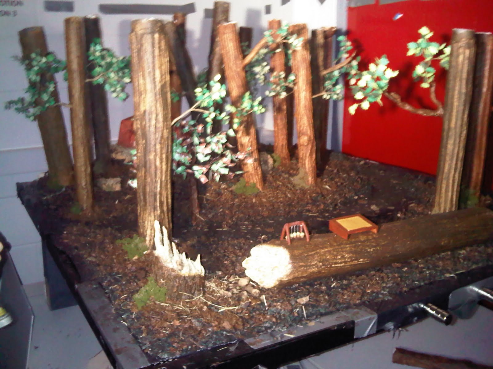 The fallen tree, which is also the fox's desk is removable so we can get the camera in position properly for some close ups.